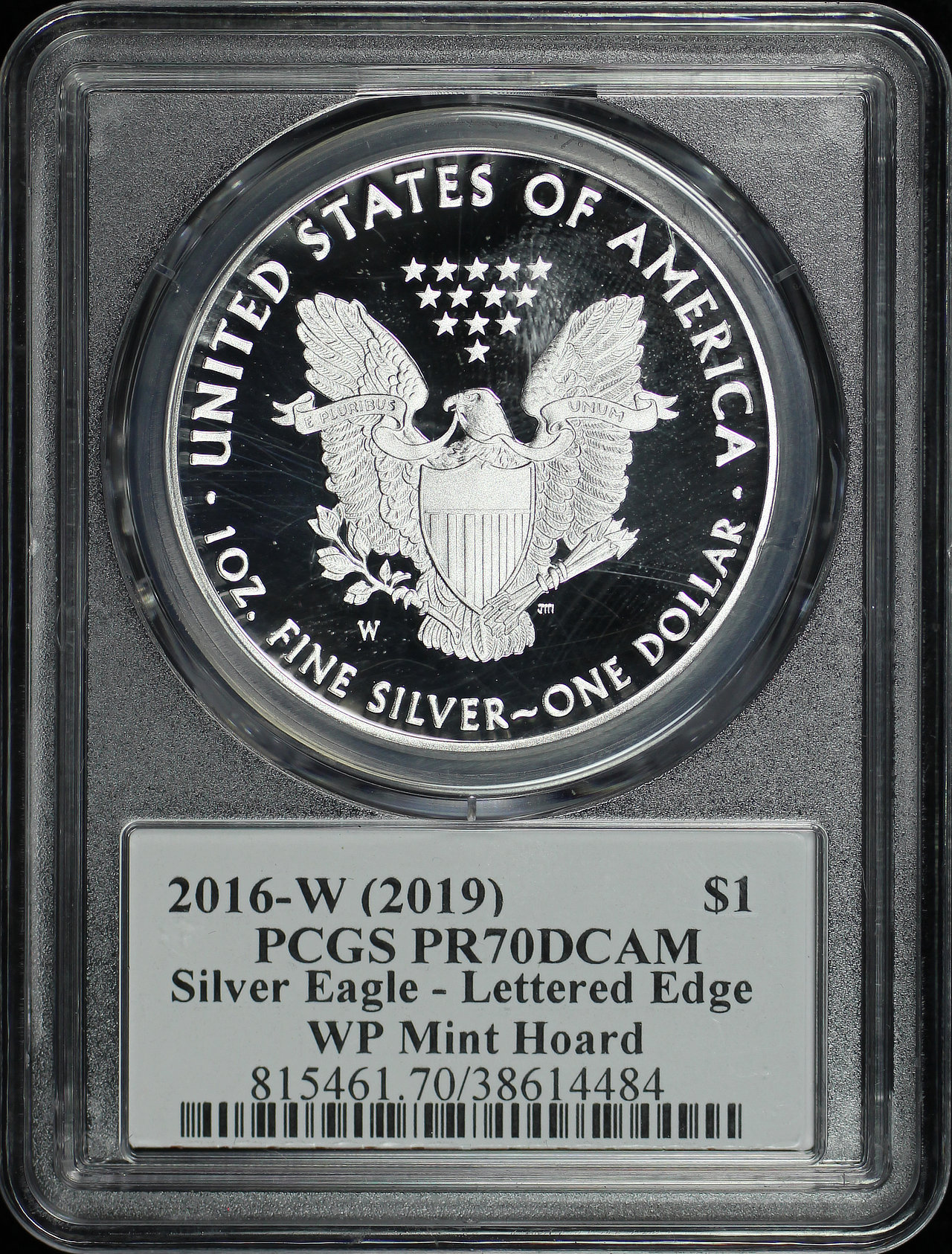 2016-W (2019) Silver Eagle 30th Anniversary Lettered Edge PCGS PR-70 DCAM West Point Mint Hoard Jim Peed Signature Label.