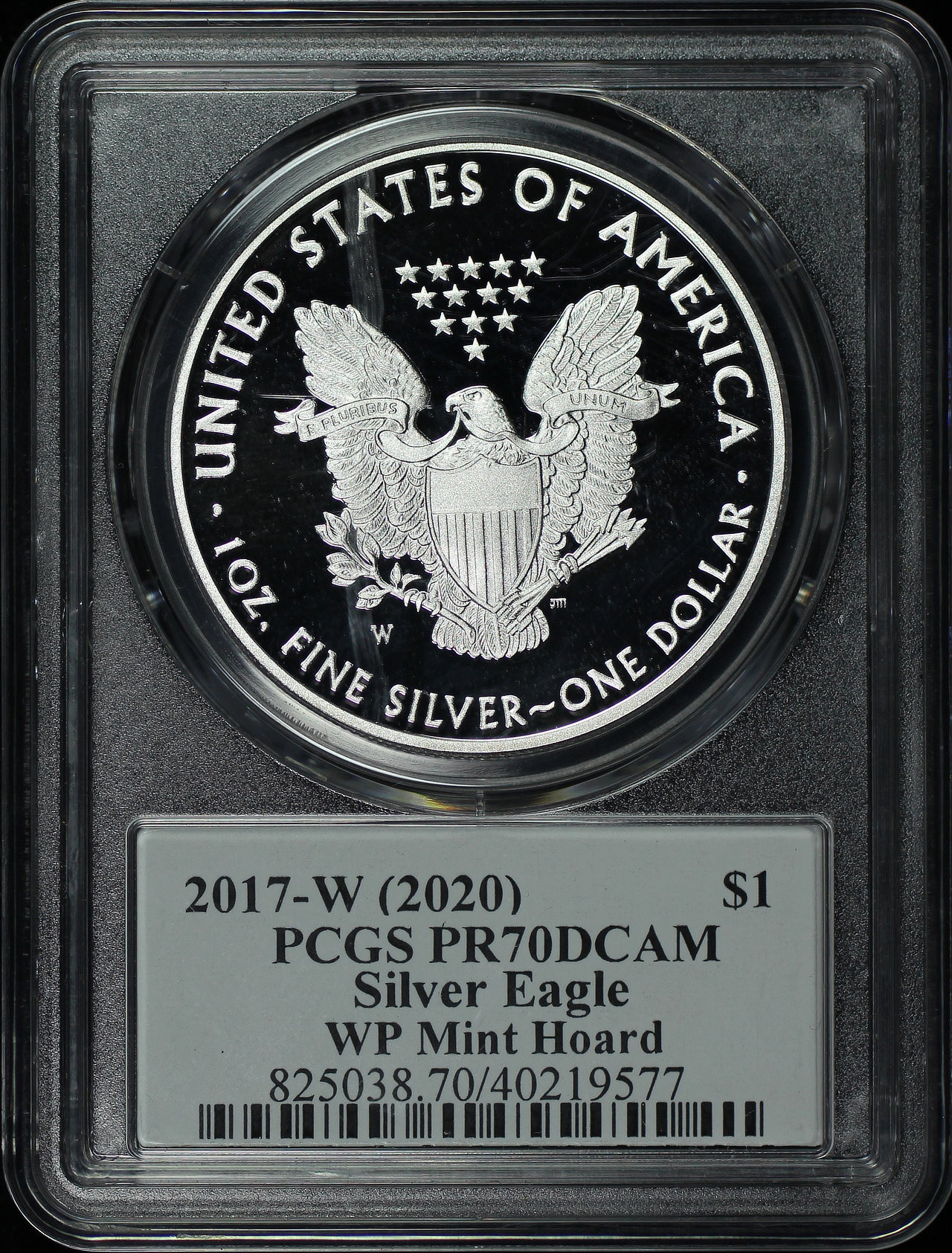 2017-W (2020) Silver Eagle PCGS PR-70 DCAM West Point Mint Hoard Thomas S. Cleveland Signature.