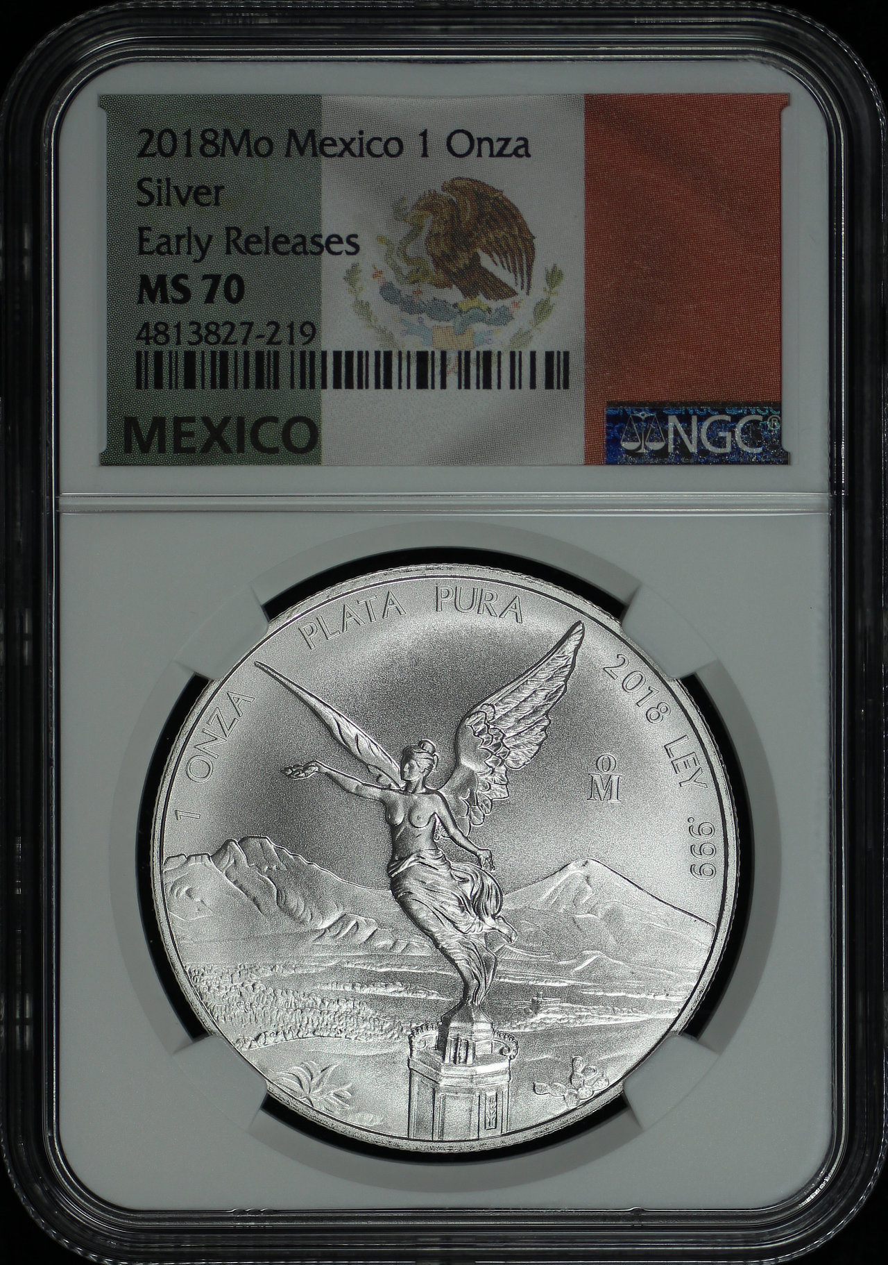 2018-Mo Mexico Silver Libertad Onza NGC MS-70 Early Release.