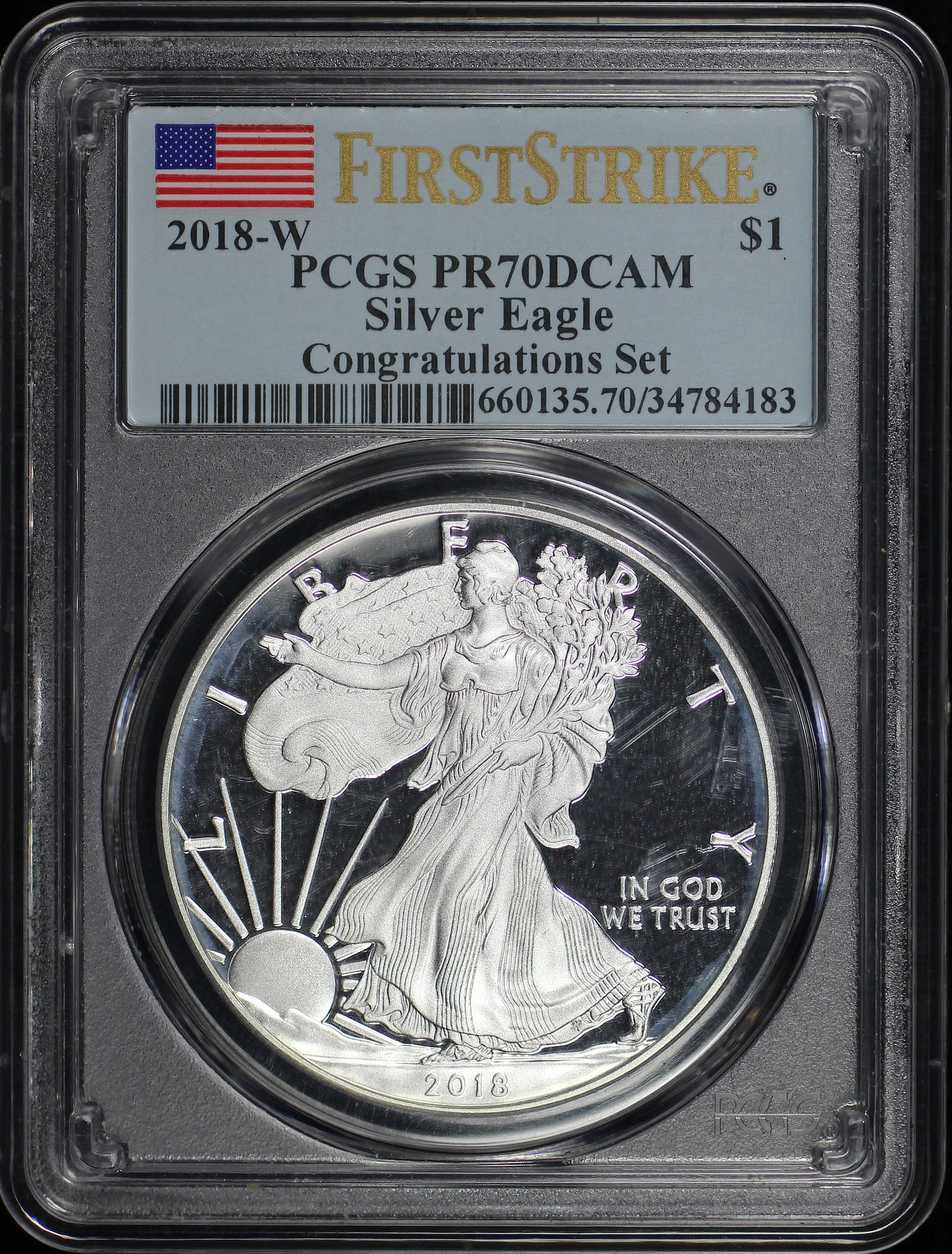 2018-W Silver Eagle PCGS PR-70 DCAM Congratulations Set.