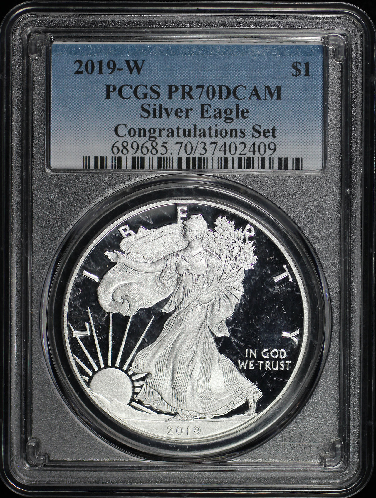 2019-W Silver Eagle PCGS PR-70 DCAM Congratulations Set.