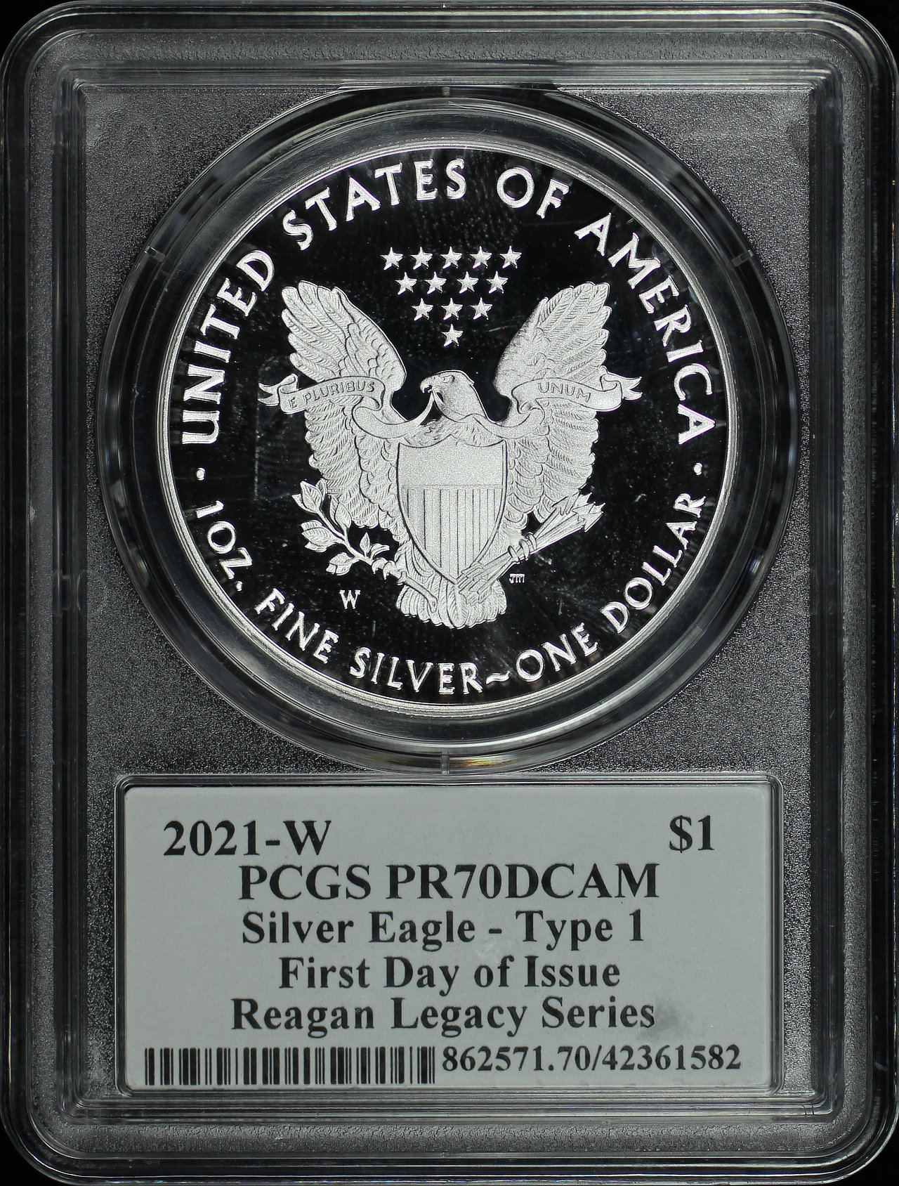 2021-W Silver Eagle Type 1 PCGS PR-70 DCAM Michael Reagan.