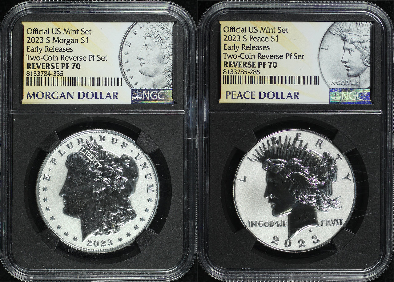 2023-S Morgan & Peace Dollar NGC PF-70 Reverse Proof Early Release.