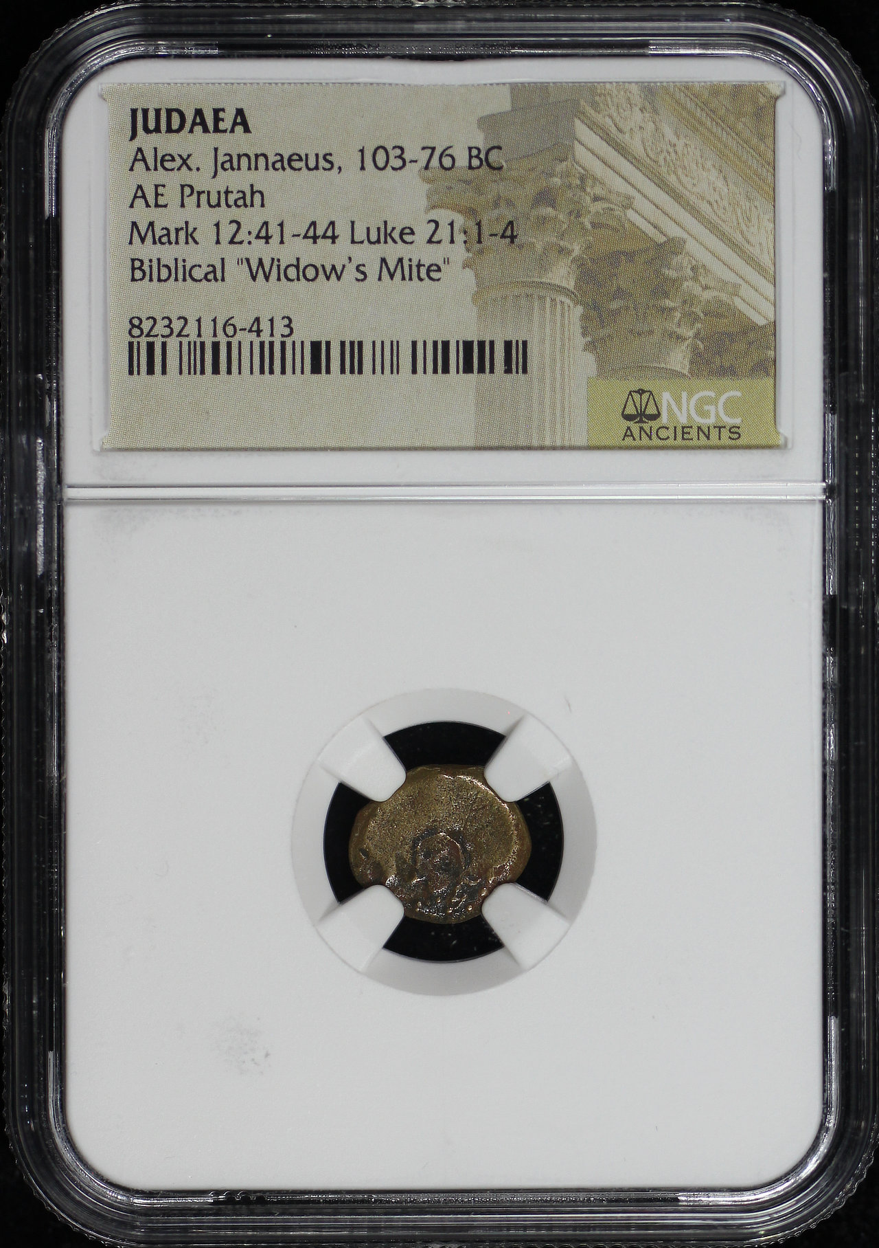 Alex. Jannaeus, Judaea 103-76 BC AE Prutah Mark 12:41-44, Luke 21: 1-4 NGC Biblical “Widow’s Mite”