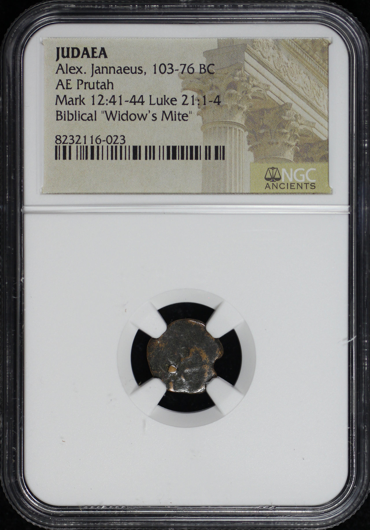 Alex. Jannaeus, Judaea 103-76 BC AE Prutah Mark 12:41-44, Luke 21: 1-4 NGC Biblical “Widow’s Mite”
