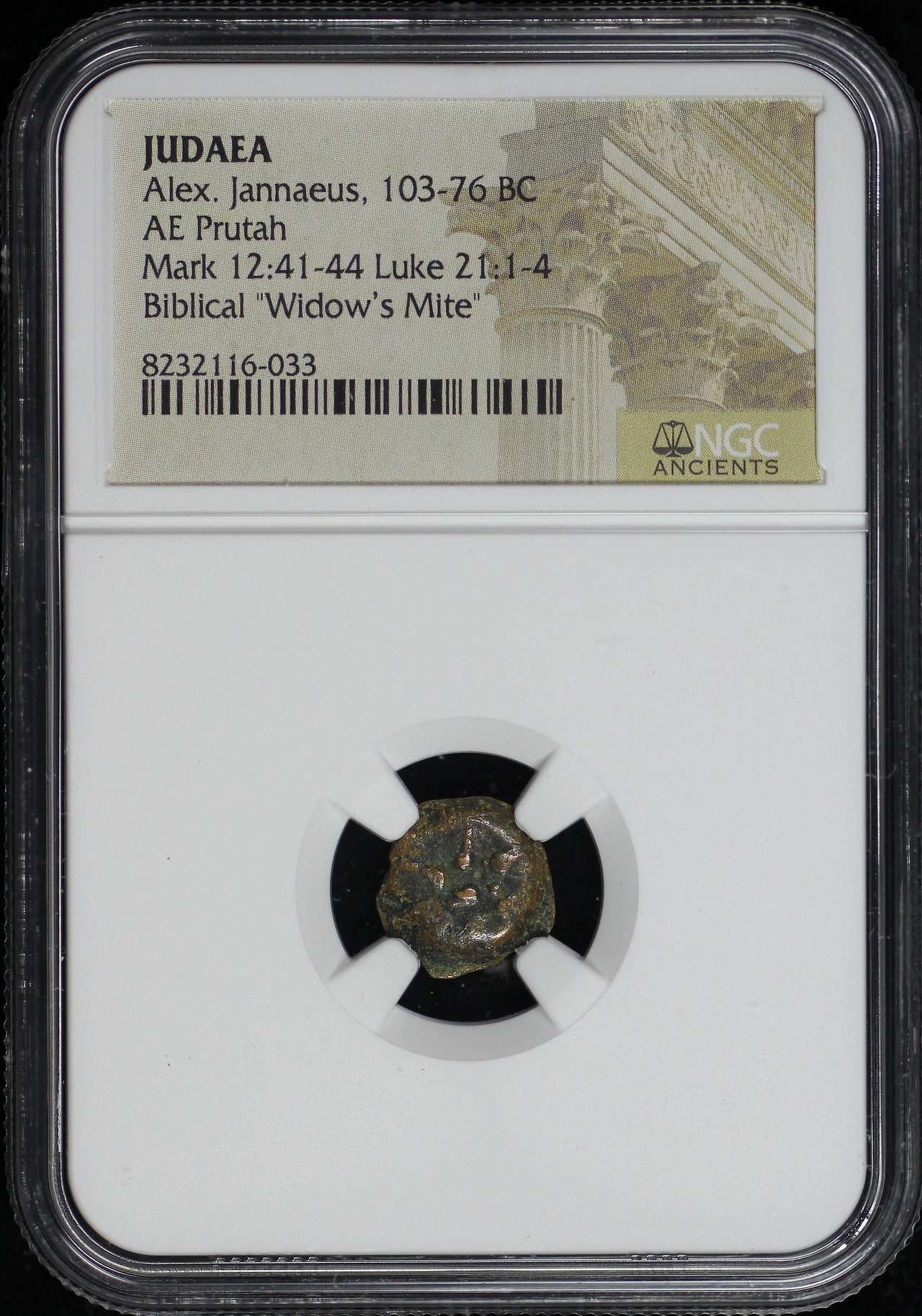 Alex. Jannaeus, Judaea 103-76 BC AE Prutah Mark 12:41-44, Luke 21: 1-4 NGC Biblical “Widow’s Mite”