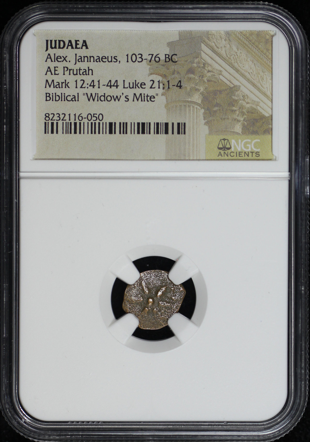 Alex. Jannaeus, Judaea 103-76 BC AE Prutah Mark 12:41-44, Luke 21: 1-4 NGC Biblical “Widow’s Mite”