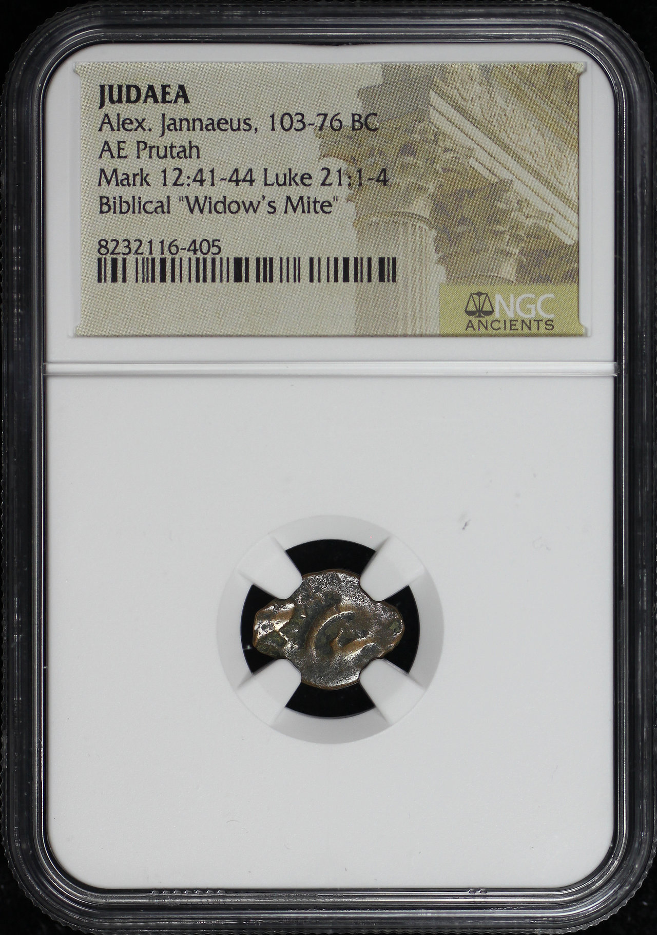 Alex. Jannaeus, Judaea 103-76 BC AE Prutah Mark 12:41-44, Luke 21: 1-4 NGC Biblical “Widow’s Mite”