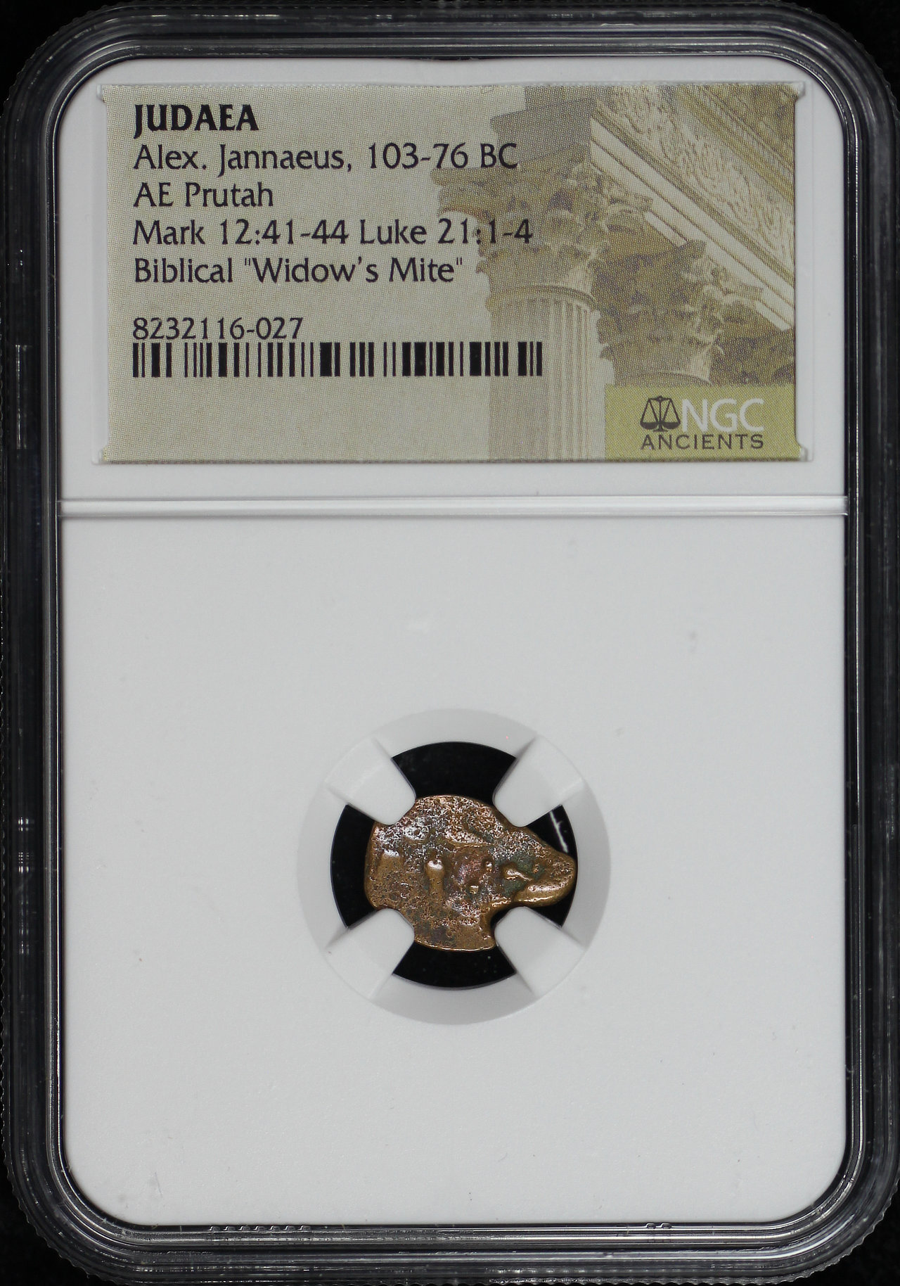 Alex. Jannaeus, Judaea 103-76 BC AE Prutah Mark 12:41-44, Luke 21: 1-4 NGC Biblical “Widow’s Mite”