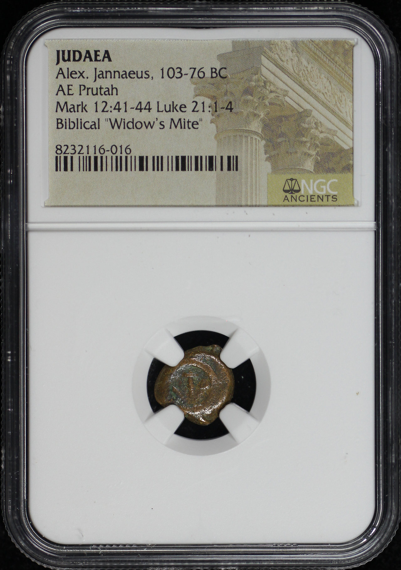 Alex. Jannaeus, Judaea 103-76 BC AE Prutah Mark 12:41-44, Luke 21: 1-4 NGC Biblical “Widow’s Mite”