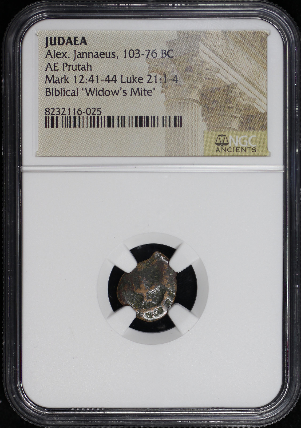 Alex. Jannaeus, Judaea 103-76 BC AE Prutah Mark 12:41-44, Luke 21: 1-4 NGC Biblical “Widow’s Mite”.