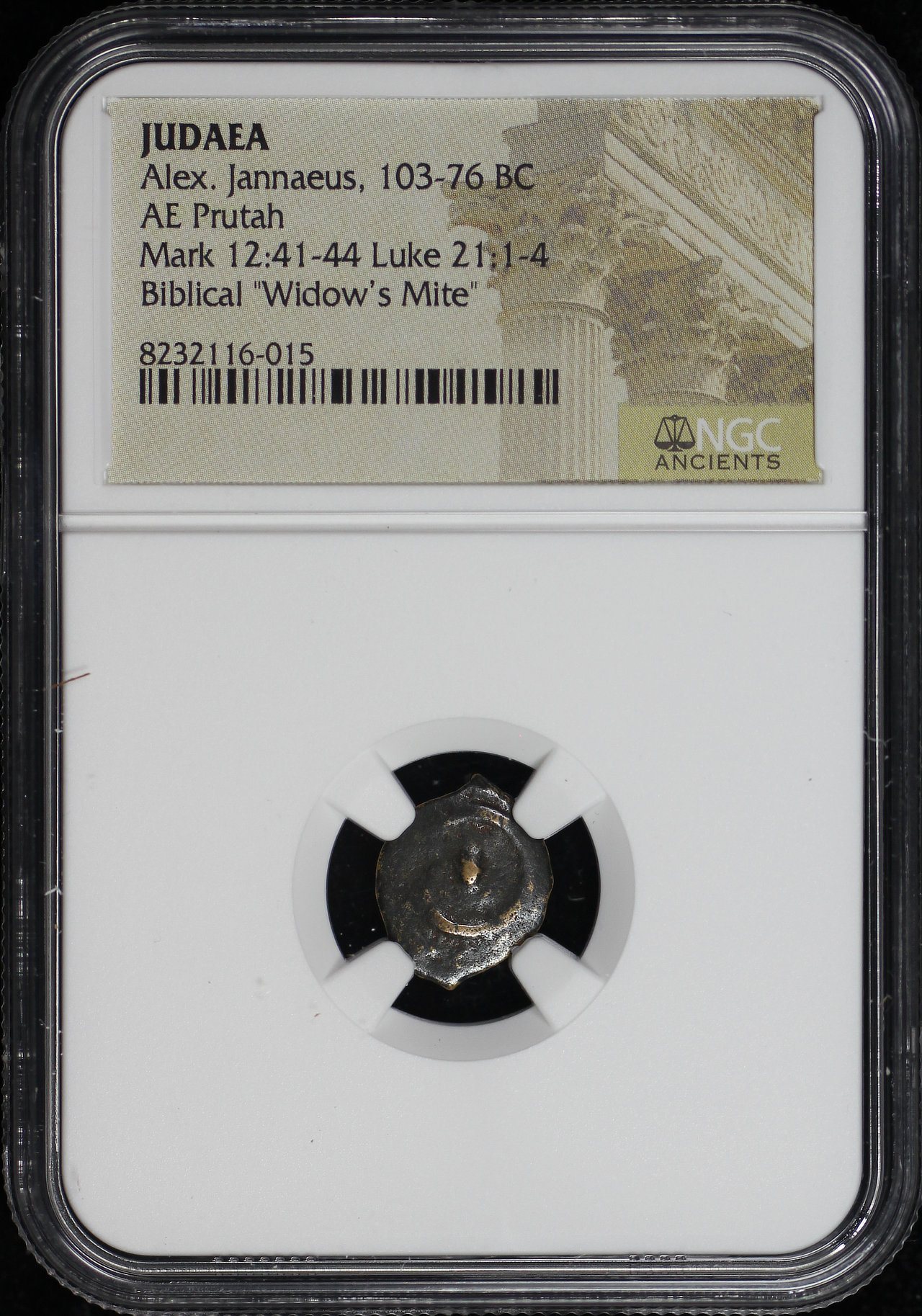 Alex. Jannaeus, Judaea 103-76 BC AE Prutah Mark 12:41-44, Luke 21: 1-4 NGC Biblical “Widow’s Mite”