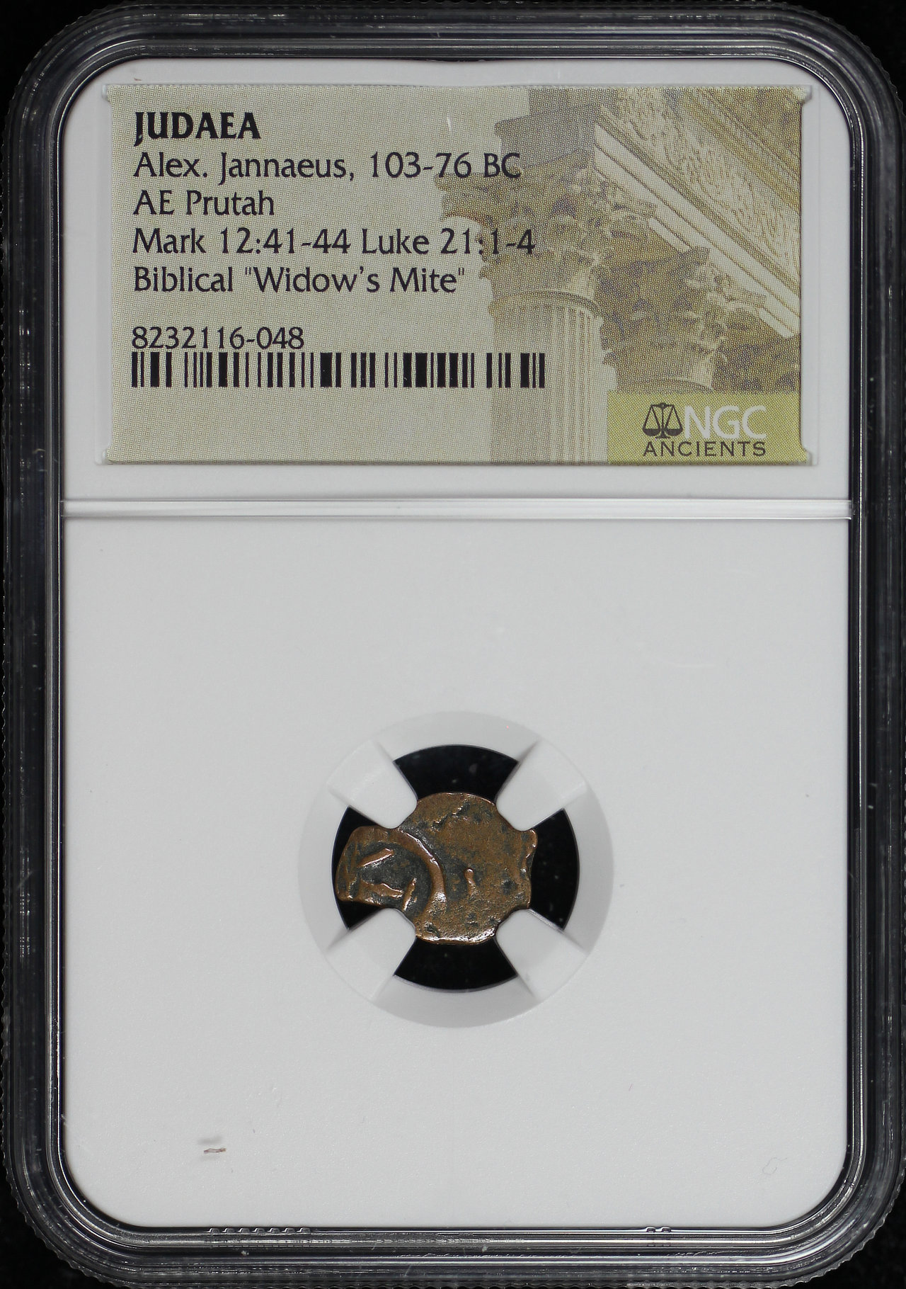 Alex. Jannaeus, Judaea 103-76 BC AE Prutah Mark 12:41-44, Luke 21: 1-4 NGC Biblical “Widow’s Mite”
