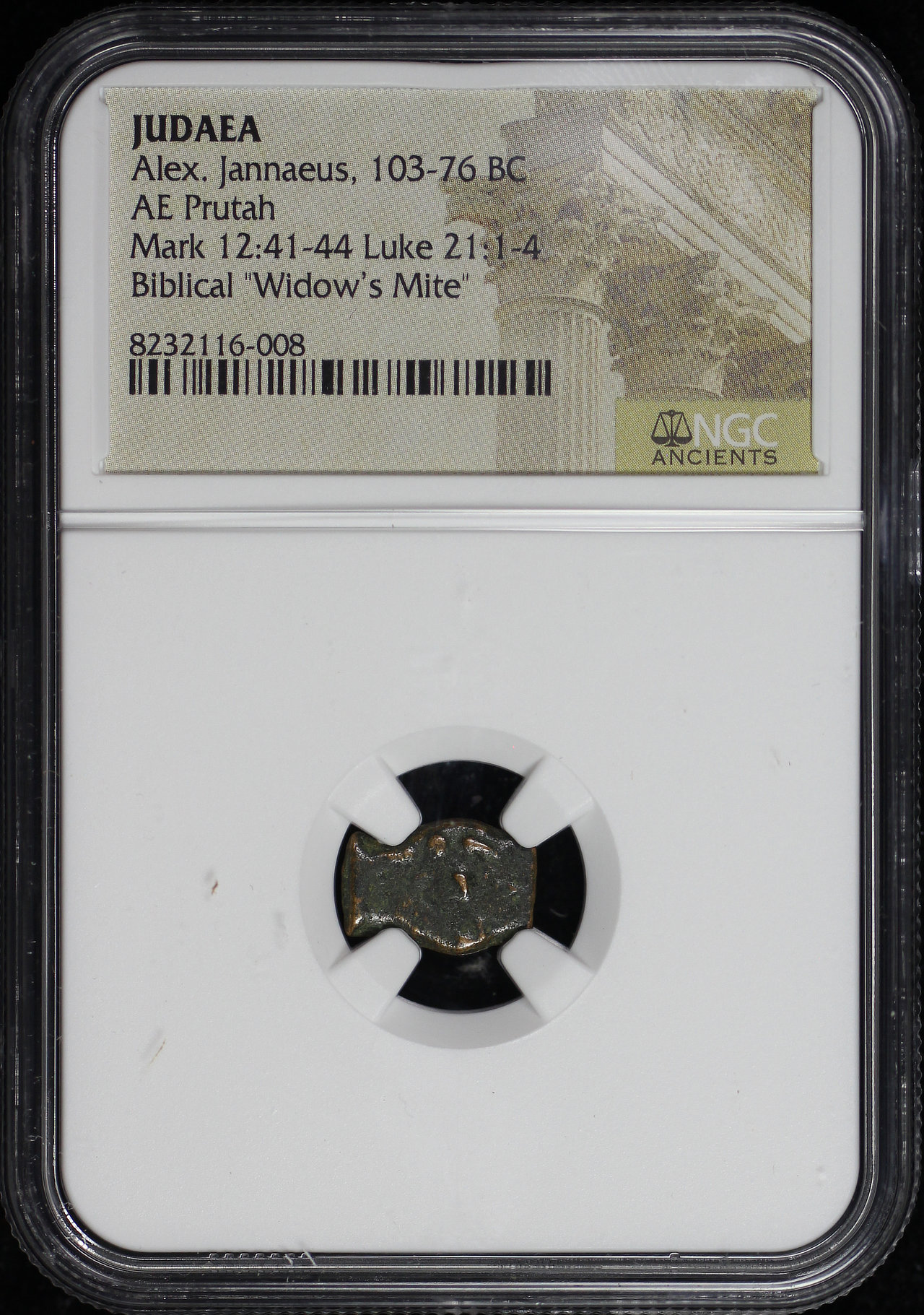 Alex. Jannaeus, Judaea 103-76 BC AE Prutah Mark 12:41-44, Luke 21: 1-4 NGC Biblical “Widow’s Mite”