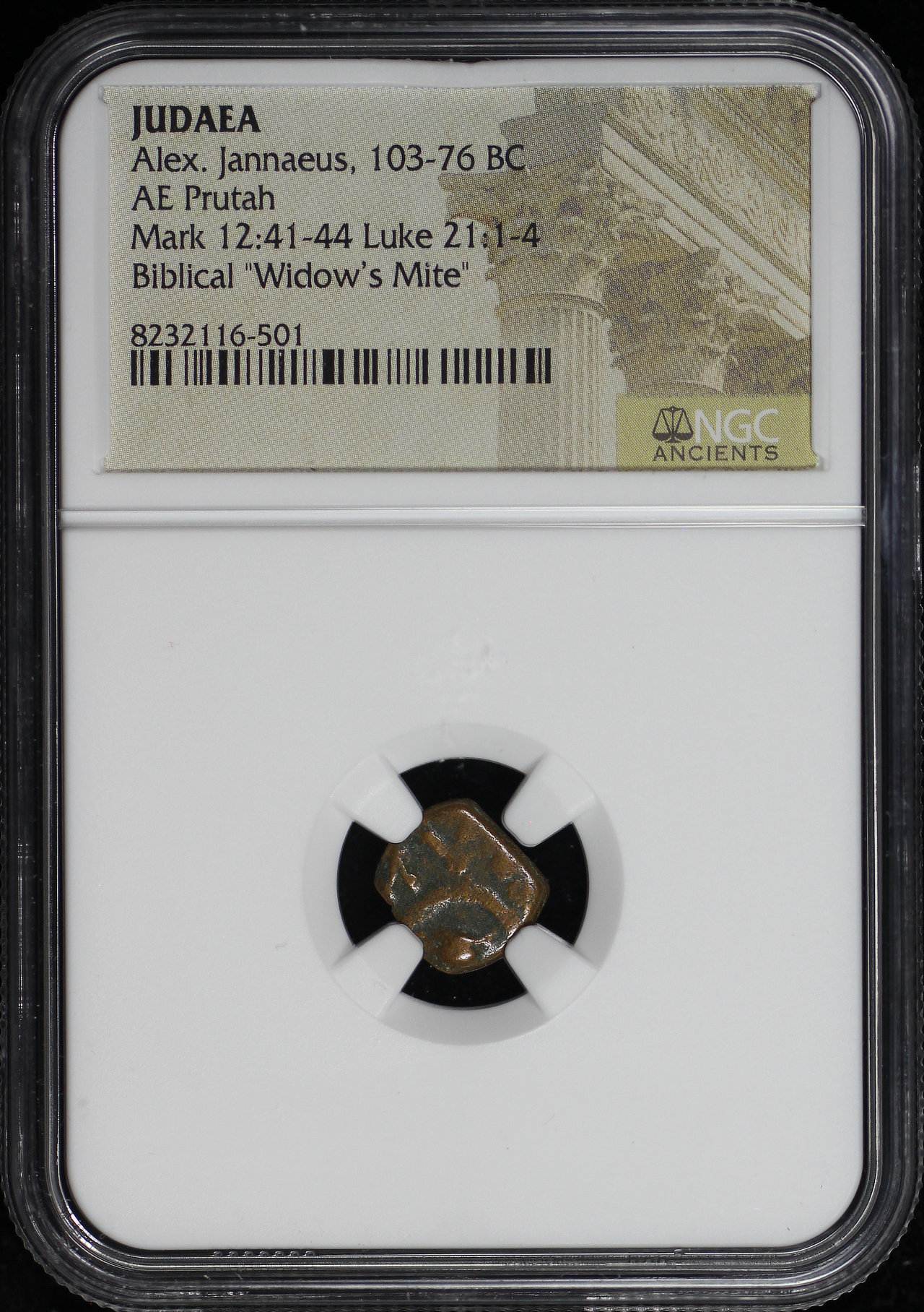 Alex. Jannaeus, Judaea 103-76 BC AE Prutah Mark 12:41-44, Luke 21: 1-4 NGC Biblical “Widow’s Mite”