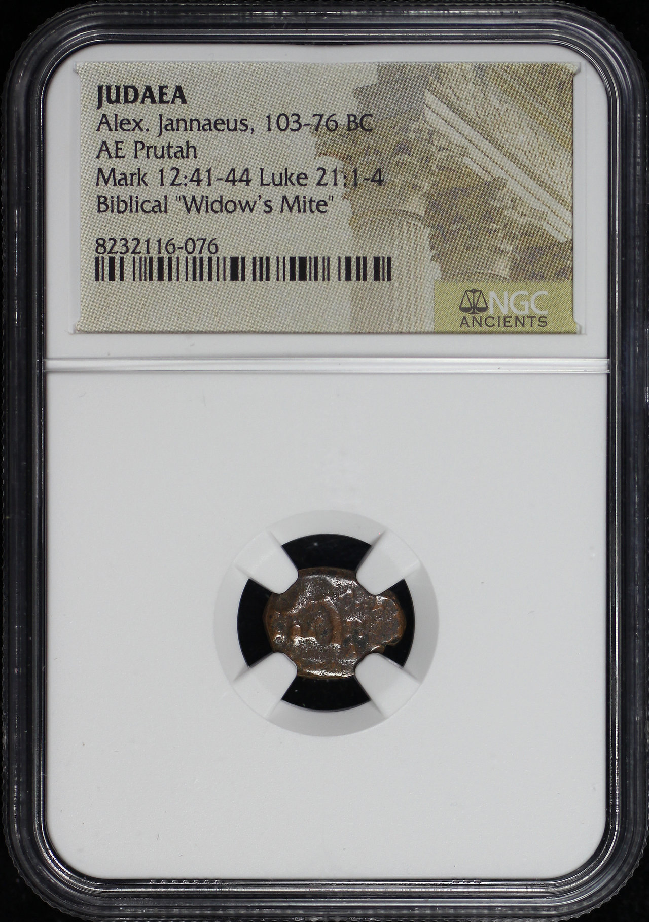 Alex. Jannaeus, Judaea 103-76 BC AE Prutah Mark 12:41-44, Luke 21: 1-4 NGC Biblical “Widow’s Mite”