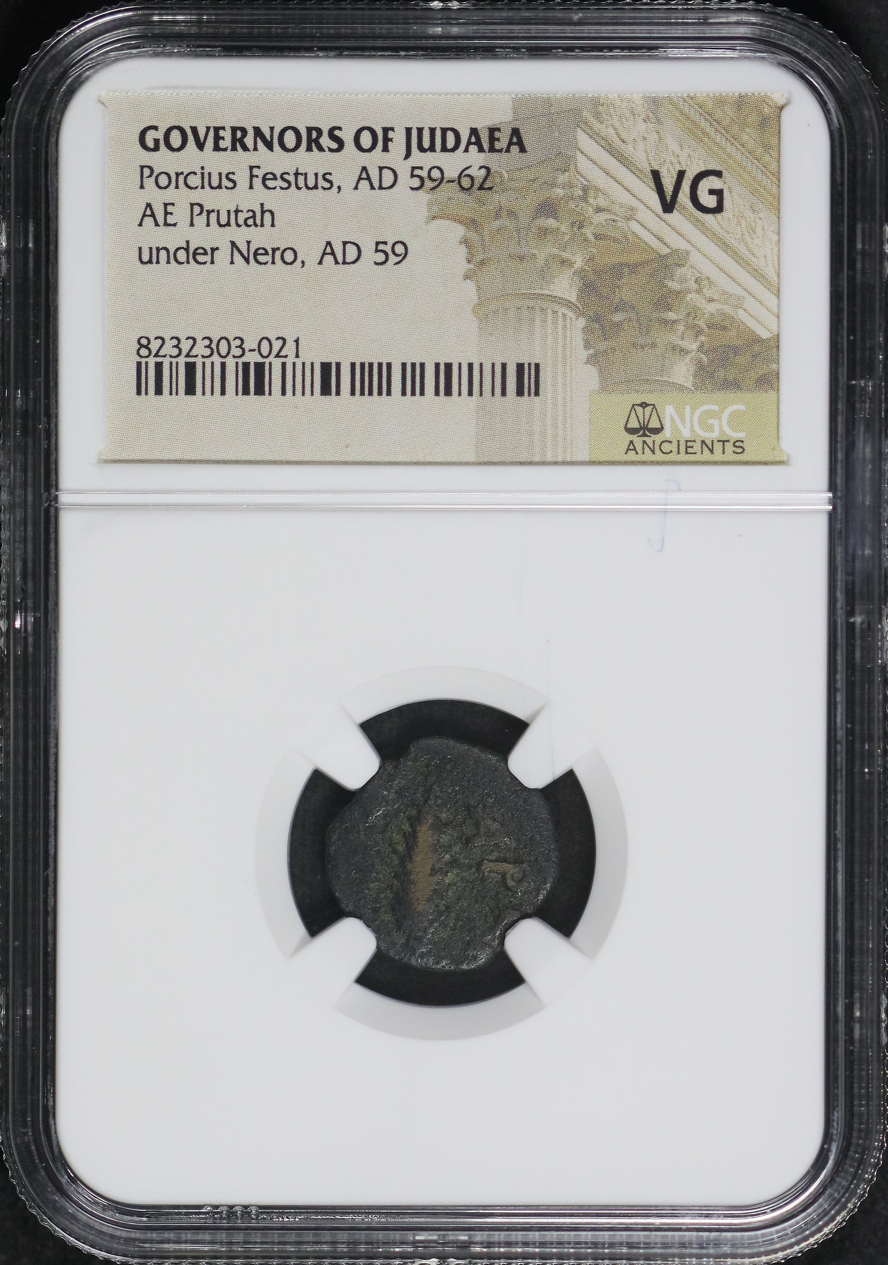 Governors Of Judaea Porcius Festus, AD 59-62 AE Prutah Under Nero, AD 59 NGC VG.