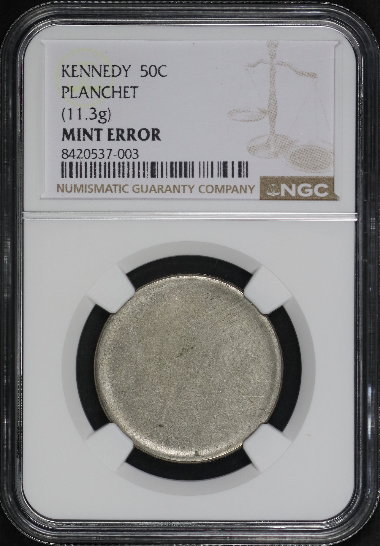 ND Kennedy Half Dollar Planchet (11.3g) NGC Mint Error.