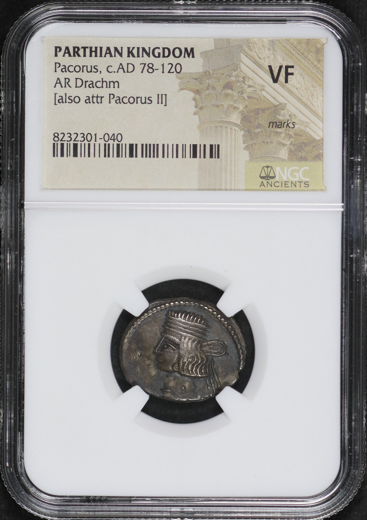 Parthian Kingdom Pacorus, C. AD 78-120 AR Drachm [Also Attr Pacorus II] NGC VF Marks