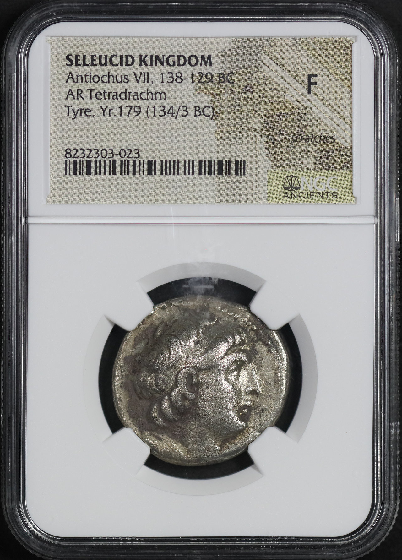 Seleucid Kingdom VII, 138-129 BC AR Tetradrachm Tyre Yr. 179 (134/3) BC NGC F.