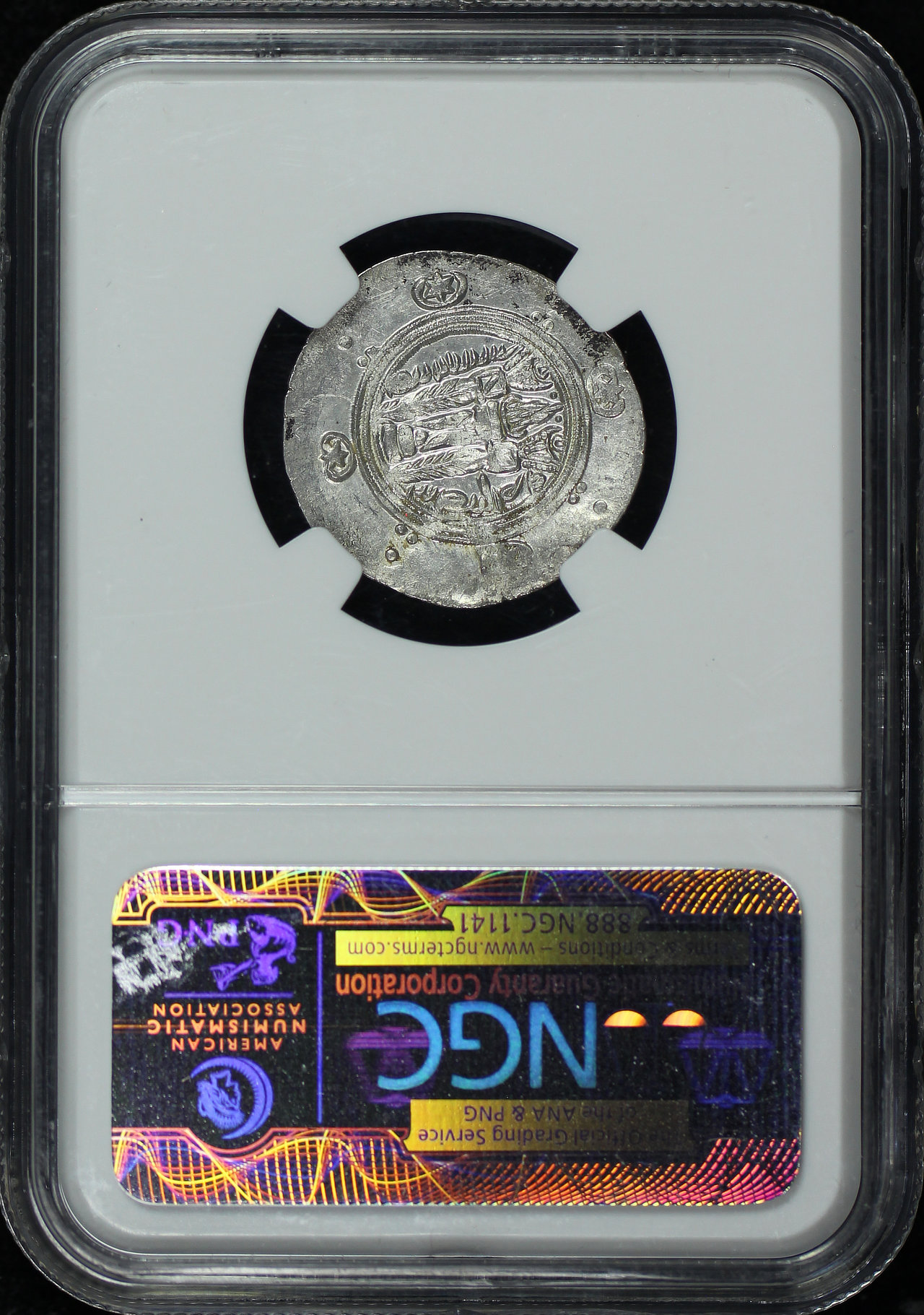 Tabaristan c.AD 780-793 AR Hemidrachm Obverse Bust. rv Fire Altar NGC Mint State Silk Road Hoard