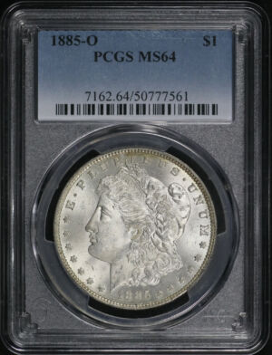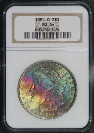 1885-O Morgan Dollar PCGS MS-64 Blue, Green, & Violet Obverse Toning